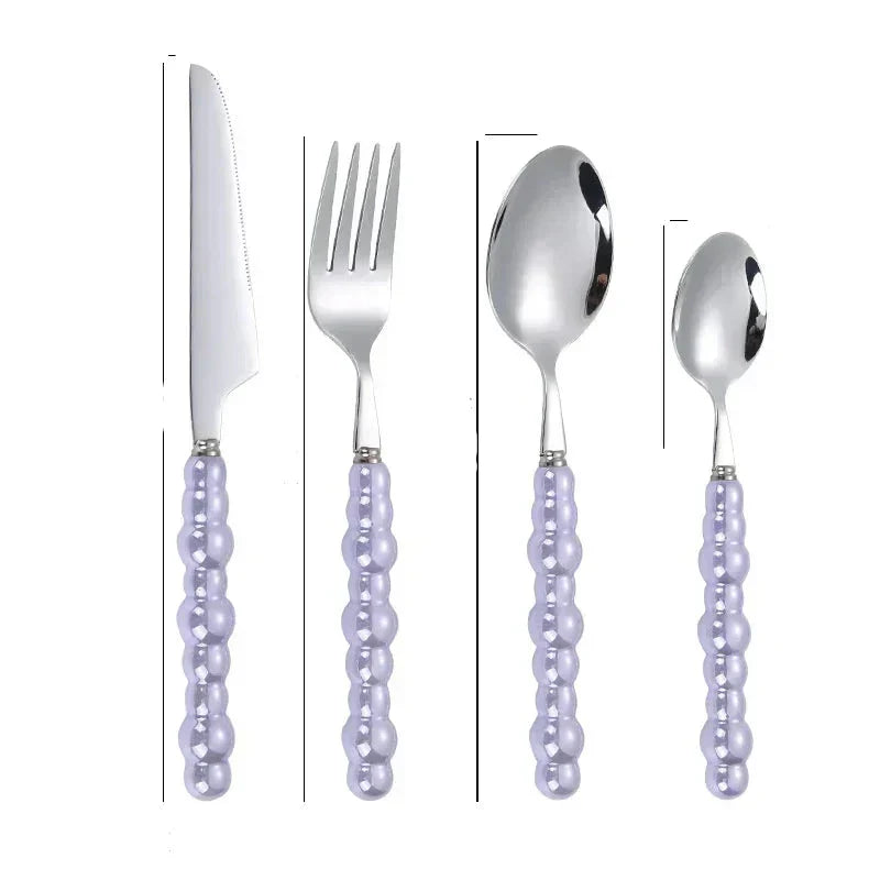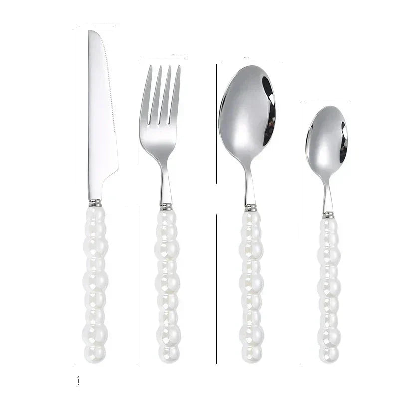 ElegantPearl | Conjunto de Talheres de Aço Inoxidável com Acabamento em Pérola